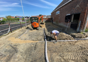Uitgraven, aanvullen en egaliseren voor terrassen, opritten en tuinen.